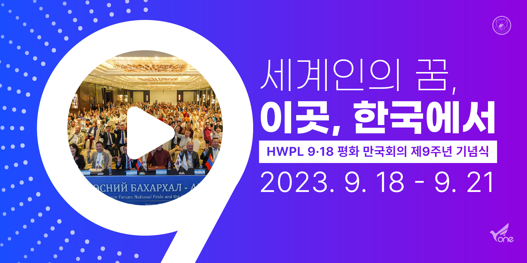 평화를 바라는 전 세계인의 간절한 바람이 이루어지기를 '어딘가 누군가 하겠지' 가 아닌, 여기 대한민국에서 시작했습니다. 매년 이맘때면 축제의 장이 펼쳐지는데요. 바로 'HWPL 9·18 평화 만국회의 제9주년 기념식'입니다.