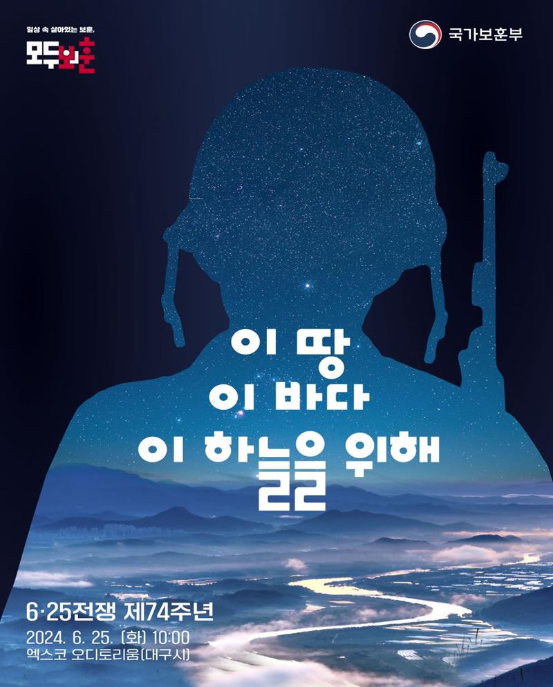 오늘은 6·25 전쟁이 일어난 지 74주년이 되는 날입니다. 오늘 오전 10시 대구 엑스코 오디토리움에서 '이 땅, 이 바다, 이 하늘을 위해'라는 주제로 열린 기념식은 참전유공자와 정부 및 군 주요 인사, 참전국 주한 외교사절 등 1천300여 명이 참석하였어요.